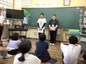 鹿児島国際大学教育現場体験プログラム 投稿者: 三島村立 三島大里学園 2024年9月4日2025年4月10日 9月4日(水)から鹿児島国際大学から,お二人の学生さんが大里学園に来てくれました。鹿児島国際大学教育現場体験プログラムとして,3日間学校生活を共にすることとなります。 実際の学校現場を体験し,職員や児童生徒と接する中で,様々なことを吸収してもらえればと思います。 自己紹介をしてもらいました!