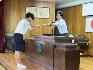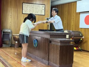全校集会では,南日本硬筆展・英検・夏の祭典・りんり俳句の表彰式を行いました。児童生徒が,各分野で力を発揮してがんばってくれています。今後のそれぞれの活躍も楽しみです。