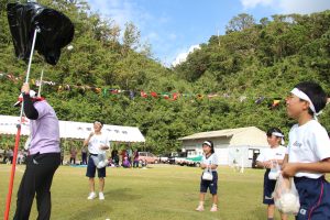 今年は,密を避けるということで,玉入れも『ソーシャルディスタンス玉入れ』と名付け,一定の距離から近づくことなく,一人10個のお手玉を大事に投げました。いつもと違う玉入れでしたが楽しくできました。