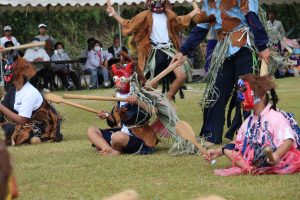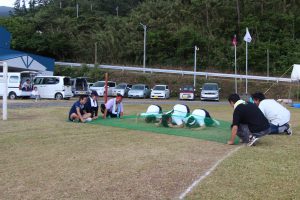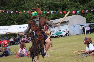 運動会(10月11日)④ 投稿者: 三島村立 三島大里学園 2020年10月12日2020年11月10日 郷土芸能の『面踊り』です。 準備を重ねてきましたが,いよいよ本番です。広いグランドで鬼が舞います。 障害物競争の様子です。今年はネットくぐりに皆苦戦しています。会場から笑いと声援が聞こえます。