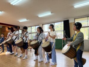 今回は、ギニアから帰国された徳田健一郎先生が来てくださり、「みしま」「フェ」「ジョレ」の3曲を披露し、専門的なアドバイスをいただきながら、練習に取り組みことができました。
