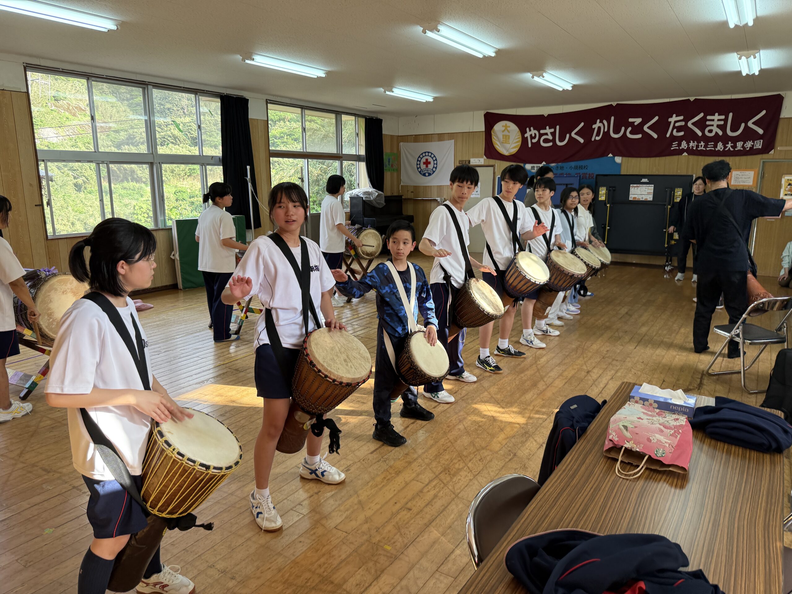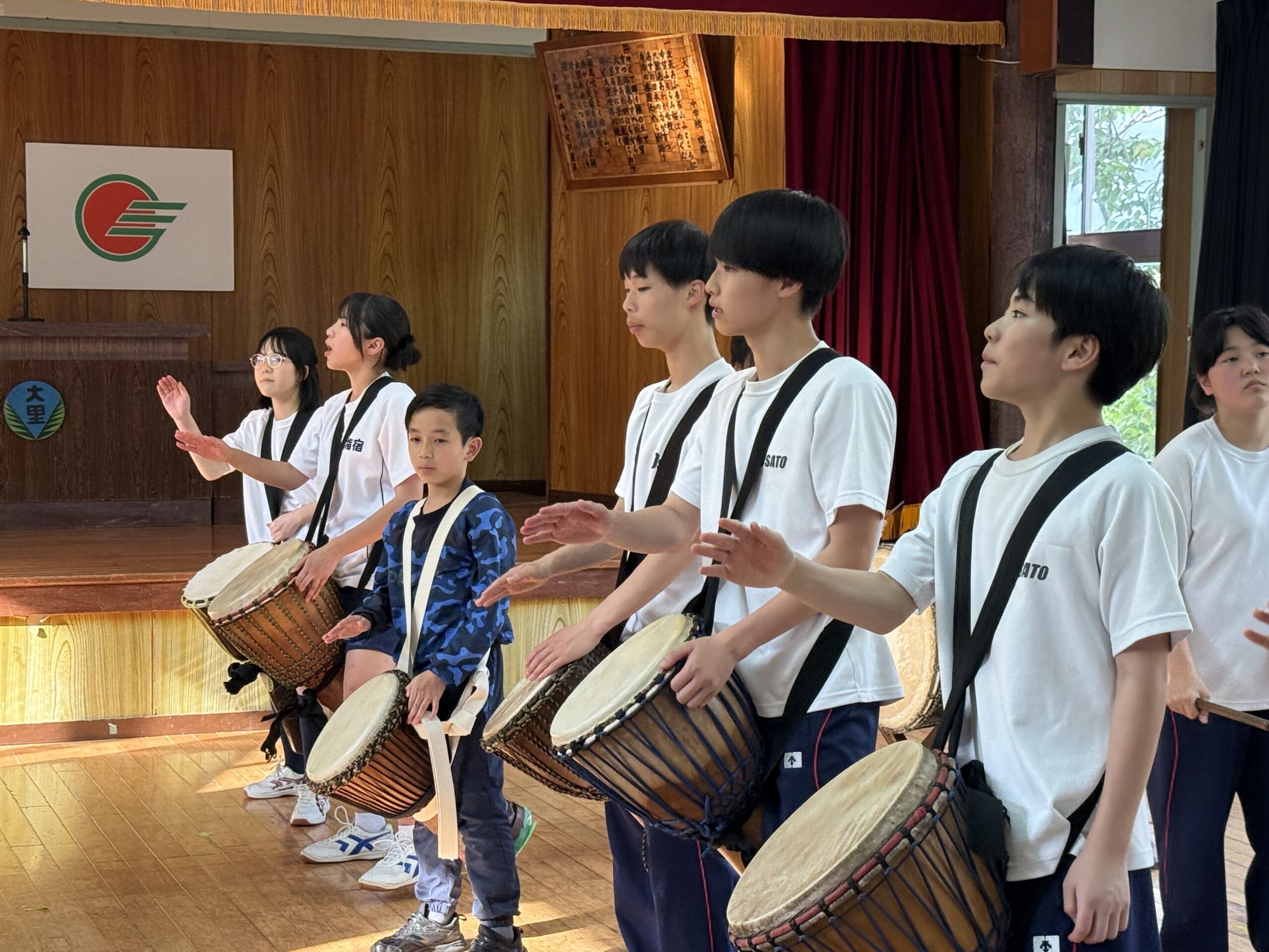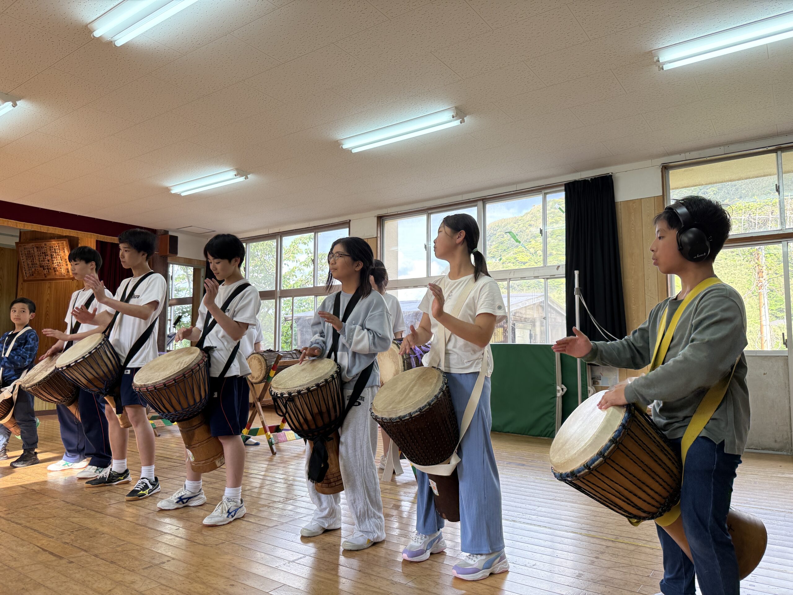 4月30日(水)の放課後、5~9年生がみしまっこジャンベツアーに向けて「エンジョイジャンベ」に取り組みました。