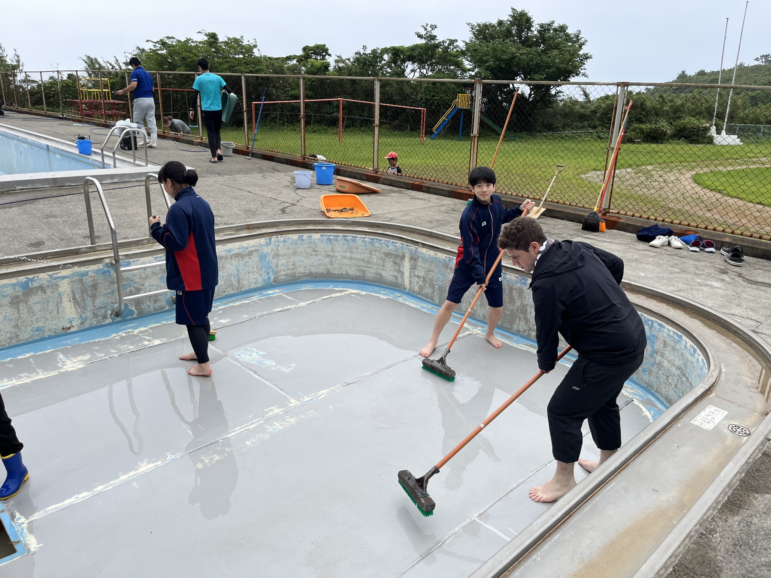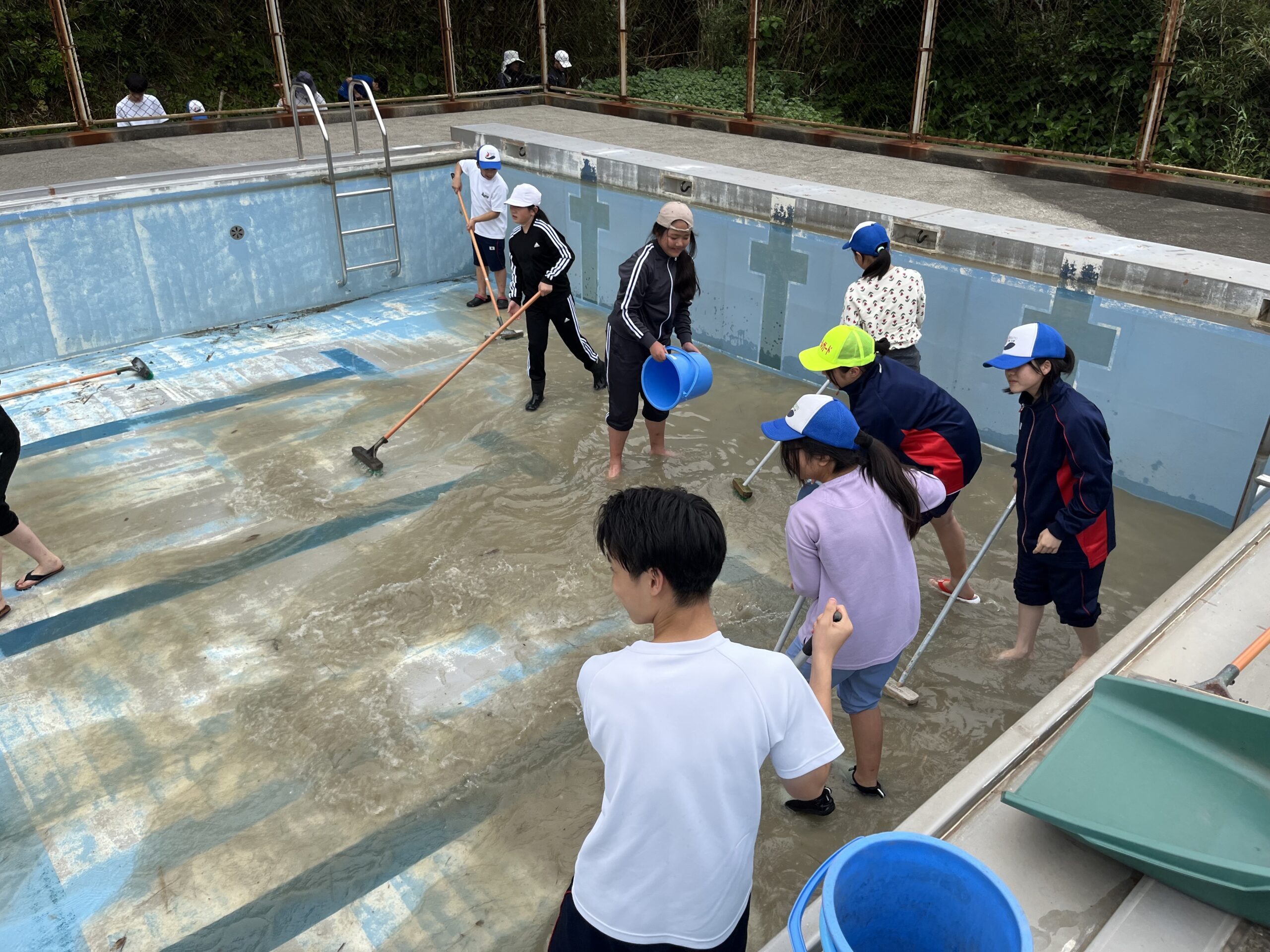水泳学習、準備万端!! 投稿者: 三島村立 三島大里学園 2025年5月22日 5月22日(木)の午後 片泊学園と合同で、片泊学園のプール掃除をしました。今回は5~9年生での活動でした。 両校仲良く、一生懸命取り組み、プールがきれいになりました!! これで、水泳学習の準備、万端!!