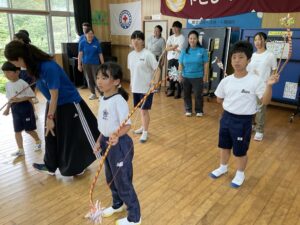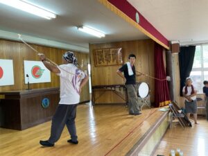 郷土芸能、練習開始!! 投稿者: 三島村立 三島大里学園 2025年6月24日2025年6月24日 6月23日(月)の2校時に郷土芸能である「弓矢踊り」を地元の方が教えに来てくださいました。 初めて踊る児童生徒が5人いる中、昨年踊っている友だちが教えてくれたり、地元の方が優しく教えてくれたりしました。 短い時間でしたが、充実した時間になりました。 これから練習して、素晴らしい弓矢踊りにしていきます!!