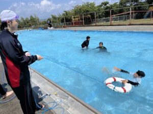 2025年度の水泳学習が先日終わり、締めくくりとして、着衣水泳学習をしました。