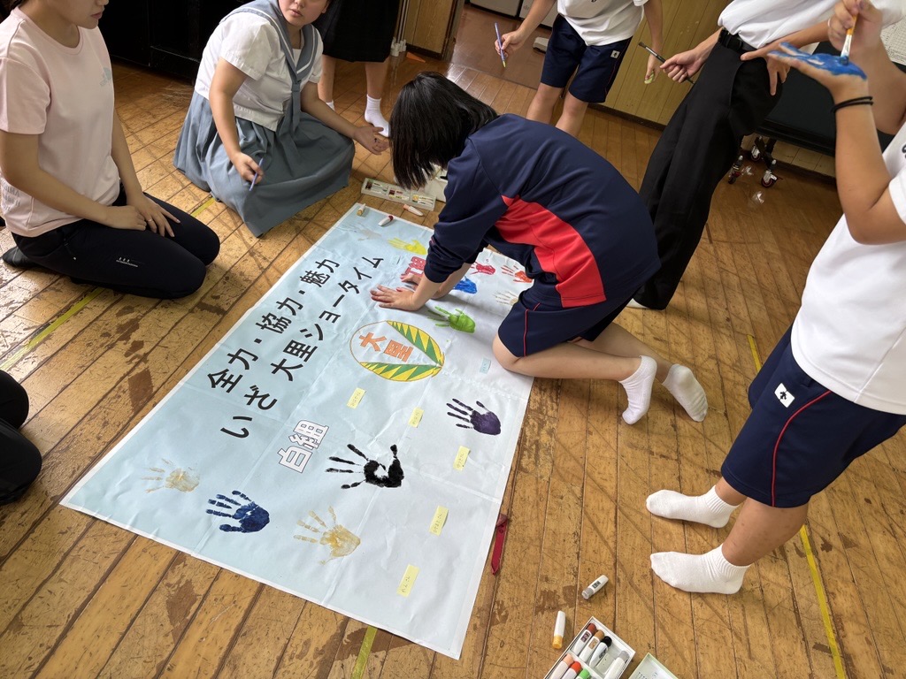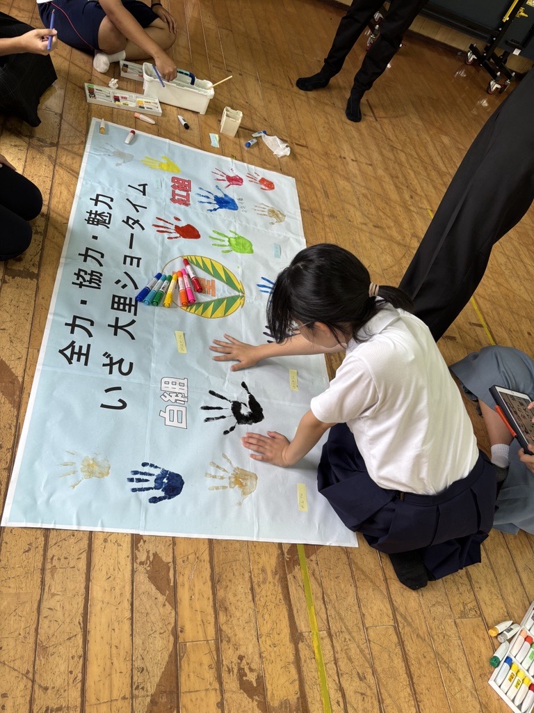 運動会まであと2日・・・ 投稿者: 三島村立 三島大里学園 2025年10月10日 運動会のスローガンを広幅用紙にかき、日々の練習も気合いが入ってきました。 ただ台風がきていて、どうなるか分かりませんが、みんなは、体調を整えて運動会が成功するように、準備を万端にしておきましょう!!いい運動会になることを楽しみにしています!!
