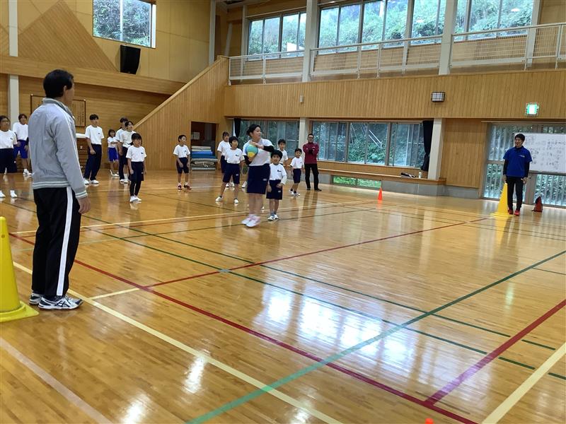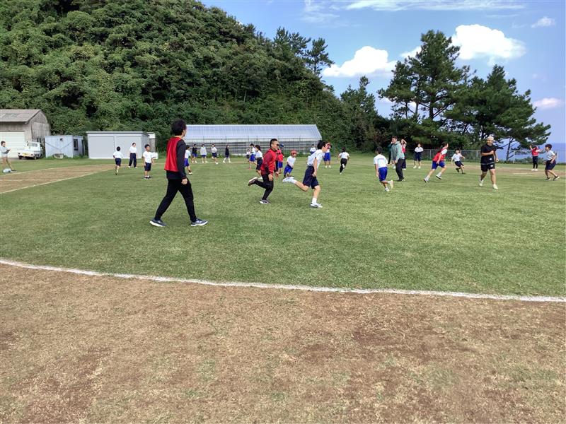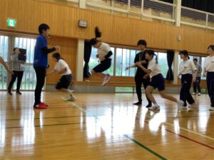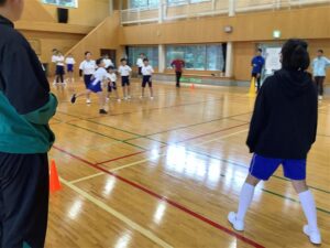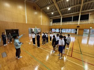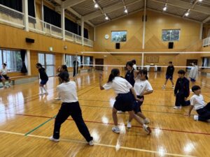 11月21日(金)の午前中に大里・片泊学園スポーツ交流会がありました。1・2時間目に、前期生は交流として郷中教育、後期生はバレーボールをしました。3・4時間目に、前期生と後期生あわせてスポーツ交流会として、長縄(エイトマン)、王様ドッジボール、学園対抗リレー、鬼ごっこという多くの交流をすることができました。8年生が中心となって種目を考えて、進行してくれました。どの種目も、みんな笑顔で楽しく取り組むことができました。さらに大里学園と片泊学園の絆が深まりましたね!!