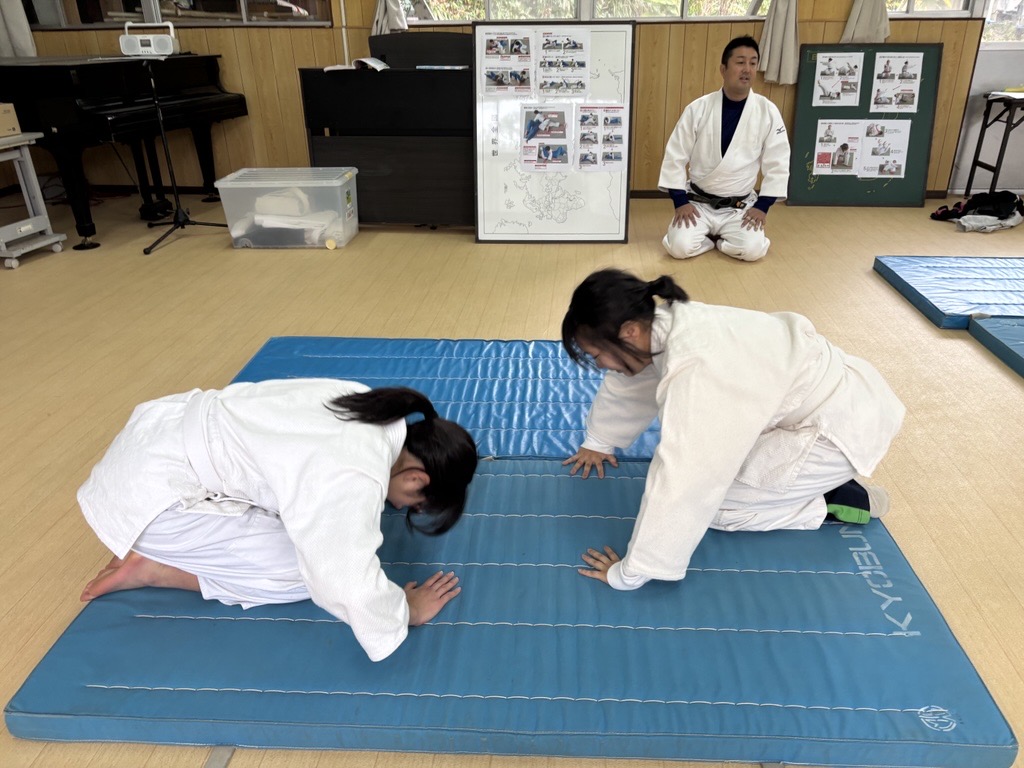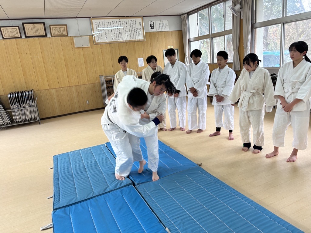 片泊学園と合同体育~柔道編~ 投稿者: 三島村立 三島大里学園 2026年1月26日 1月23日(金)から4日間、大里学園の後期生が、片泊学園に行き、合同で柔道を学習することになりました。1日目は、柔道着の着方や準備運動、基本的な動き、袈裟固めを習いました。合同で柔道をするのは初めてで、みんな笑顔で真剣に取り組んでいました!!