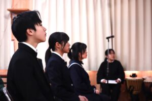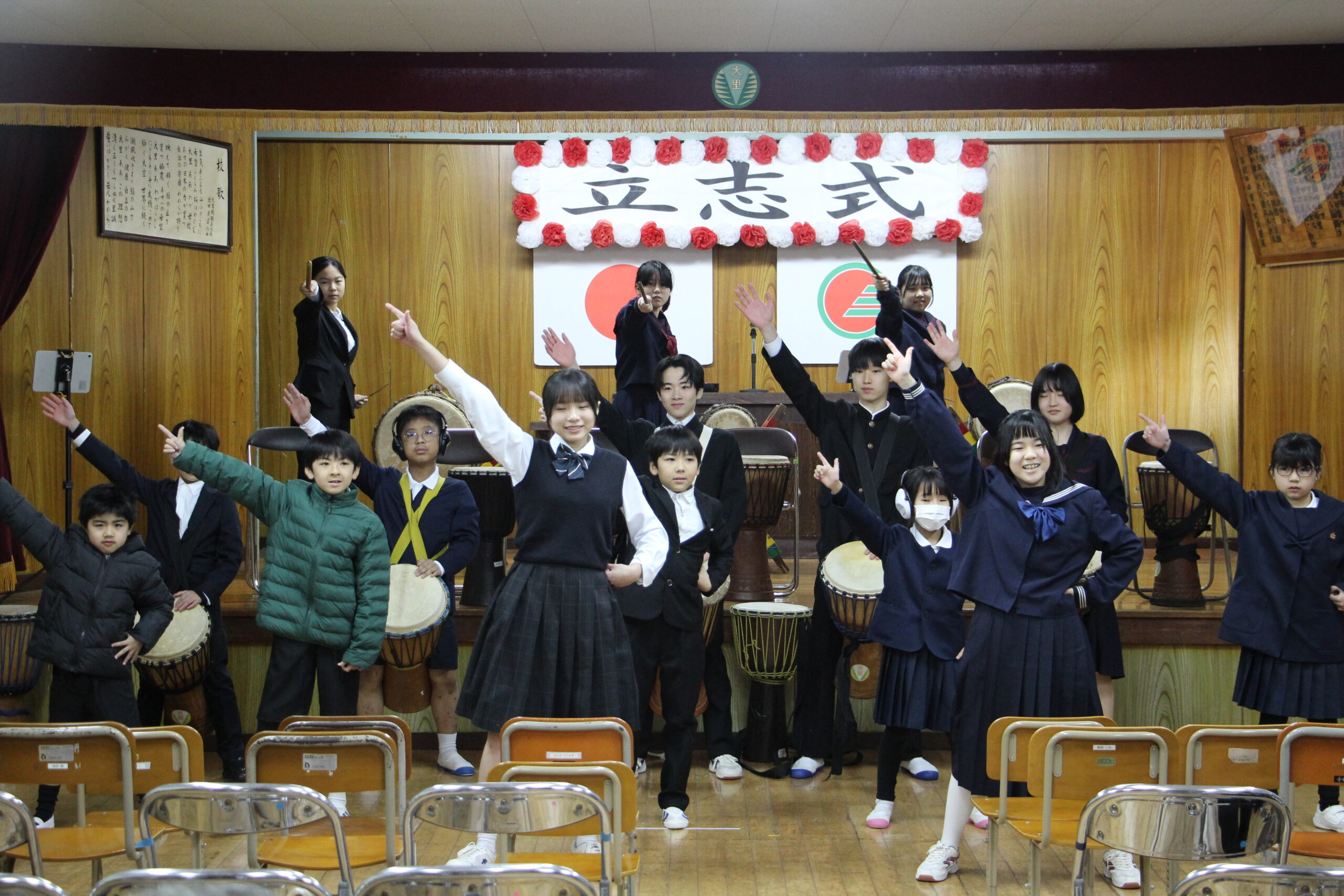 三島大里学園8年生が14歳になり、立志式を行いました。昔でいうと成人という扱いですが、「少しずつ大人になり、責任感を持って行動していかなければならない」という校長先生からのお話があり、生徒3人の立志の決意から3人とも「感謝」という言葉が出てきました。普段恥ずかしくて言えない「ありがとう」という言葉。この機会に言えて、嬉しそうでした。いろいろな方からのお祝いの言葉や保護者からのメッセージ、生徒がすごく喜んでいました。ありがとうございました。またこれから、成長していく姿を見せてくれると思います。