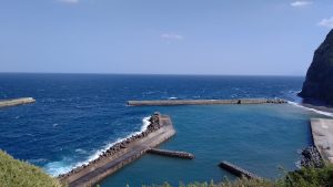 晴天ですが,昨夜から風が強く波が高いです。白波がたっています。