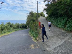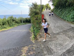 黒島は平たん地が少なく,大里ももちろん坂が多いですが,皆一生懸命走っています。