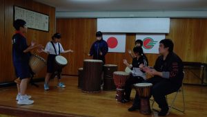 昼休みには,ジャンベを一緒に演奏する姿が!