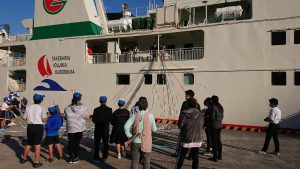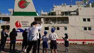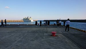 「あしたよなーっ!」という声が港に響く中船は大きな汽笛とともに出発しました。