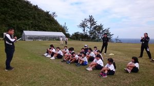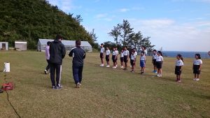 学校から,健康広場に移動し,まずは青空の下,開会式を行いました。