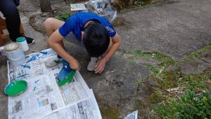 前期課程の2人は,午後からの図工で船を造りました。後期課程の技術の先生のアドバイスを受けながら木を組み合わせたり,色塗りをしています。