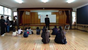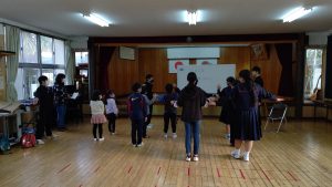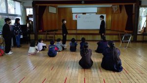 全校集会で9年生の高校入試に向けての激励(壮行)会を行いました。黒島に高校はないため,卒業後は島外の高校へ進学します。目前に迫った入試に向けて,後輩からエールを送りました。