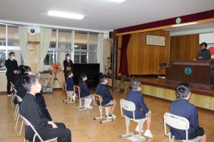 児童生徒代表の冬休みの反省と新年・3学期の抱負や校長先生のお話がありました。