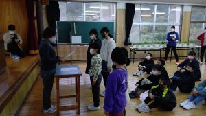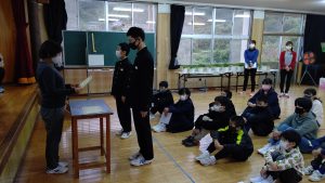 最初に県児童生徒図画作品展と数学検定の表彰式を行いました。