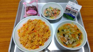 『 牛乳・チキンライス・コロコロサラダ・ジュリアンスープ・ソフトエクレア 』でした。