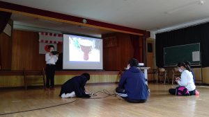 5時間目は,スクリーンに映し出して発表の練習をしました。