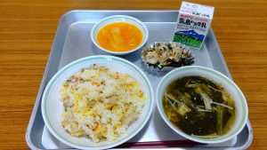 今日のメニューは『牛乳・お祝いちらし寿司・魚のごまネーズ焼き・あおさのすまし汁・フルーツポンチ』でした。