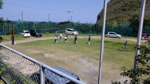 天気がいいです。今年来られた先生も交えて,サッカーをしています。