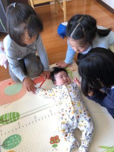 地域探検をする中で,赤ちゃんがいる家を訪ねたり,運動広場の様子を見に行きました。