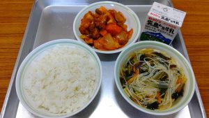 『 牛乳・麦ごはん・酢豚・ビーフンのスープ 』でした。
