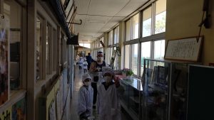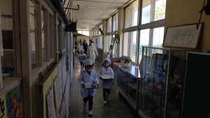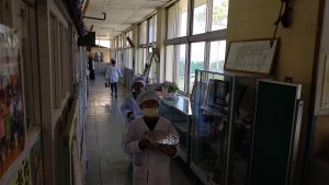 そして,午前の授業が終わり,おなかをすかせたメンバーが給食の準備に取りかかります。