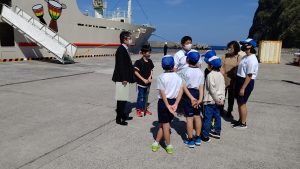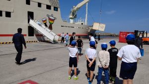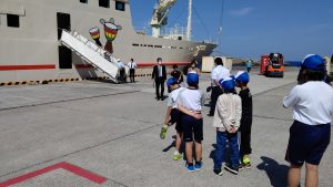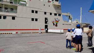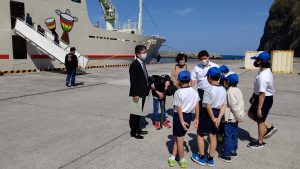 船が着く時間に合わせて,5・6年生が出迎えに行きました。
