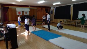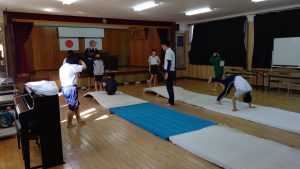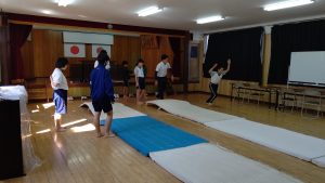 回れるかな? 投稿者: 三島村立 三島大里学園 2021年4月22日 6限目に集会室をのぞいてみると,後期課程のメンバーが体育をしています。 後転,伸膝(しんしつ)前転を練習しています。 練習を繰り返しながら,上手に回れるようになるはず!キバレ!!