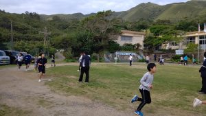 前回は集会室で縄跳びでしたが,今回は,校庭を走りました。Official髭男dism(オフィシャルヒゲダンディズム)の曲が流れる中,それぞれのペースで走りました。