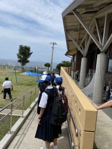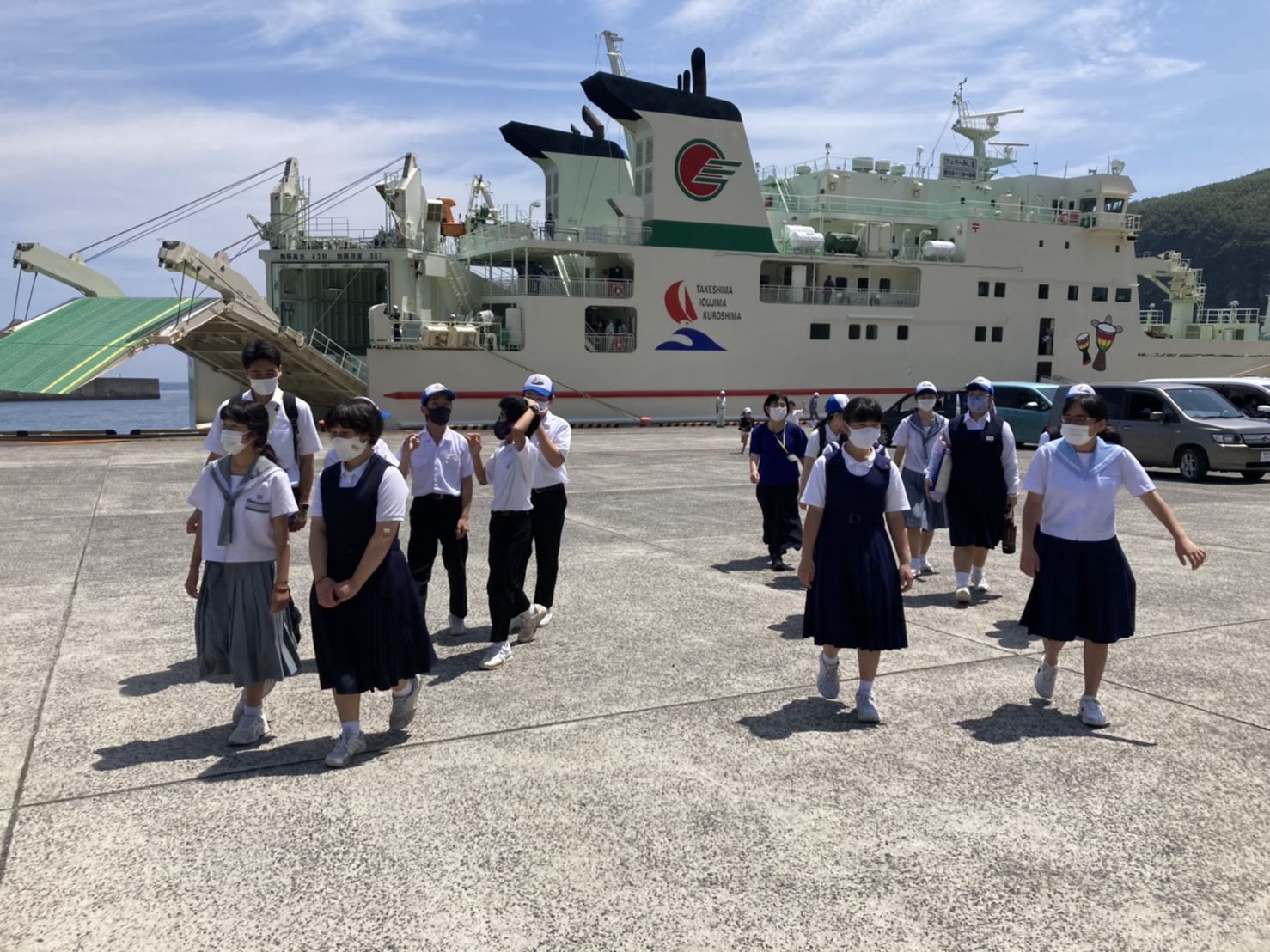 交流学習in竹島1日目②(5月30日) 投稿者: 三島村立 三島大里学園 2021年5月30日2021年6月2日 大里港を9時前に出港したフェリーは11時頃に竹島港へ到着しました。 【 船内の様子 】 【 竹島着 】 【 民宿で昼食 】 まずは,荷物をそれぞれが泊まる民宿に置いて昼食です。 『腹が減っては何とやら・・・。』おいしそうです。 【 結団式・ジオガイド 】 結団式を行い,ジオガイドに出発です。 竹島のみなさんに案内してもらいました。 【 ハマギ採り 】 明日は,島内で職場体験等をさせていただきます。 どういう1日になるのか楽しみです!