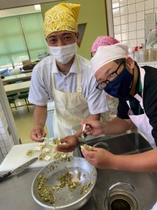 今日は家庭科の時間を使って,そのハマギ餃子づくりを行いました。