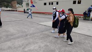 交流学習in黒島・1日目(6月15日) 投稿者: 三島村立 三島大里学園 2021年6月15日2021年6月18日 今日から黒島に竹島・硫黄島のみなさんが訪れ,交流を行います。 大里には竹島のみなさんが宿泊します。 船の入港に合わせてジャンベで出迎えました。 一緒に学校へ向かいます。 担当の先生から説明がありました。 明日は,大里の体育館に4校の後期課程のみなさんが集まります。 楽しい1日になりそうです!