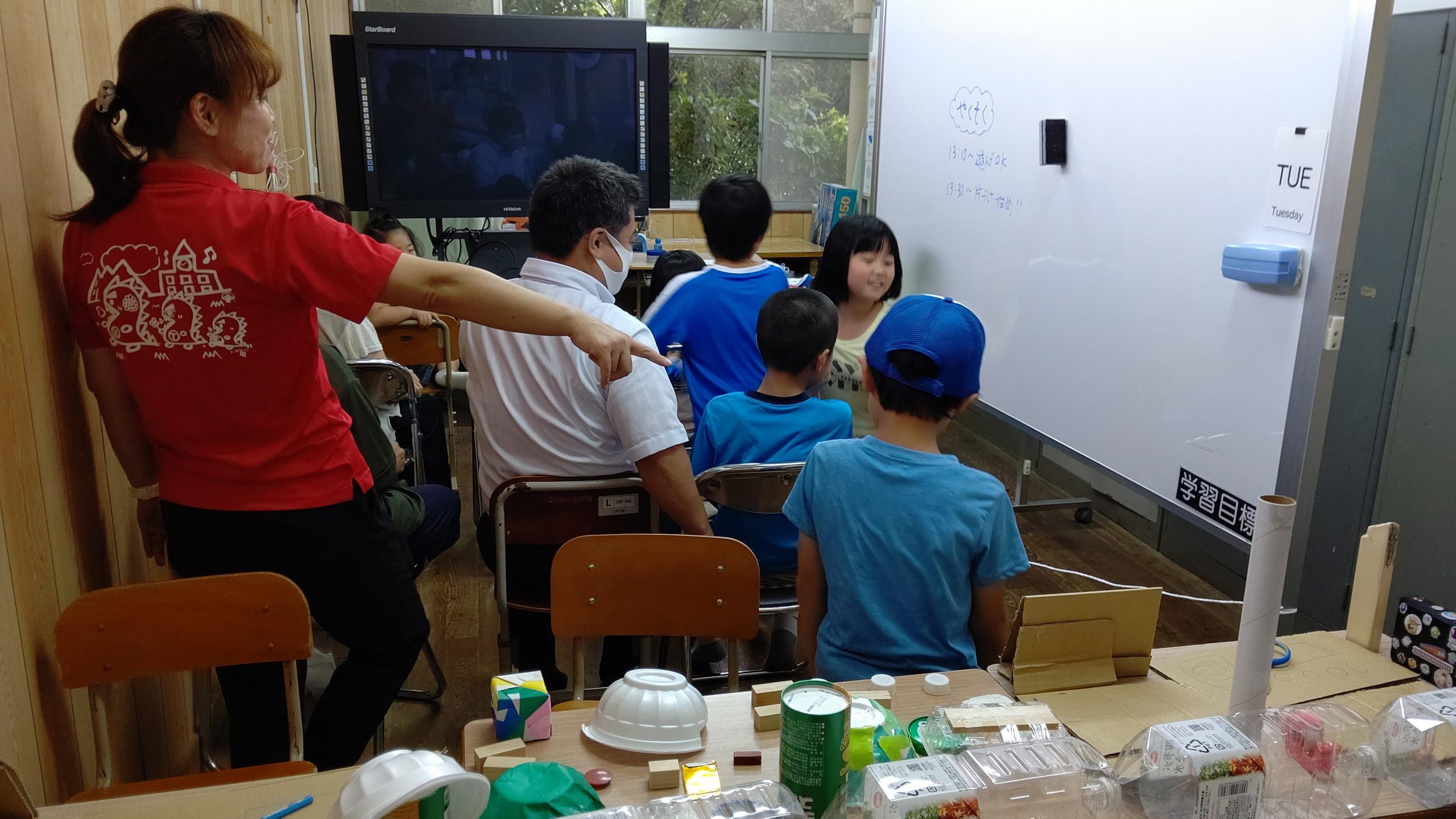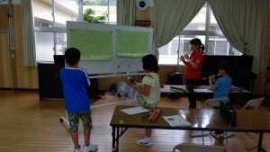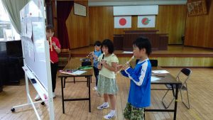 4年生が図工で作ったフェリーみしまごっこをしてみました。