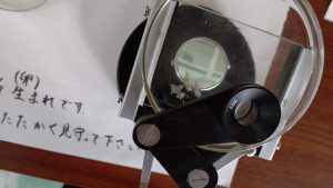 レンズの中に小さく映っているのが見えますか?