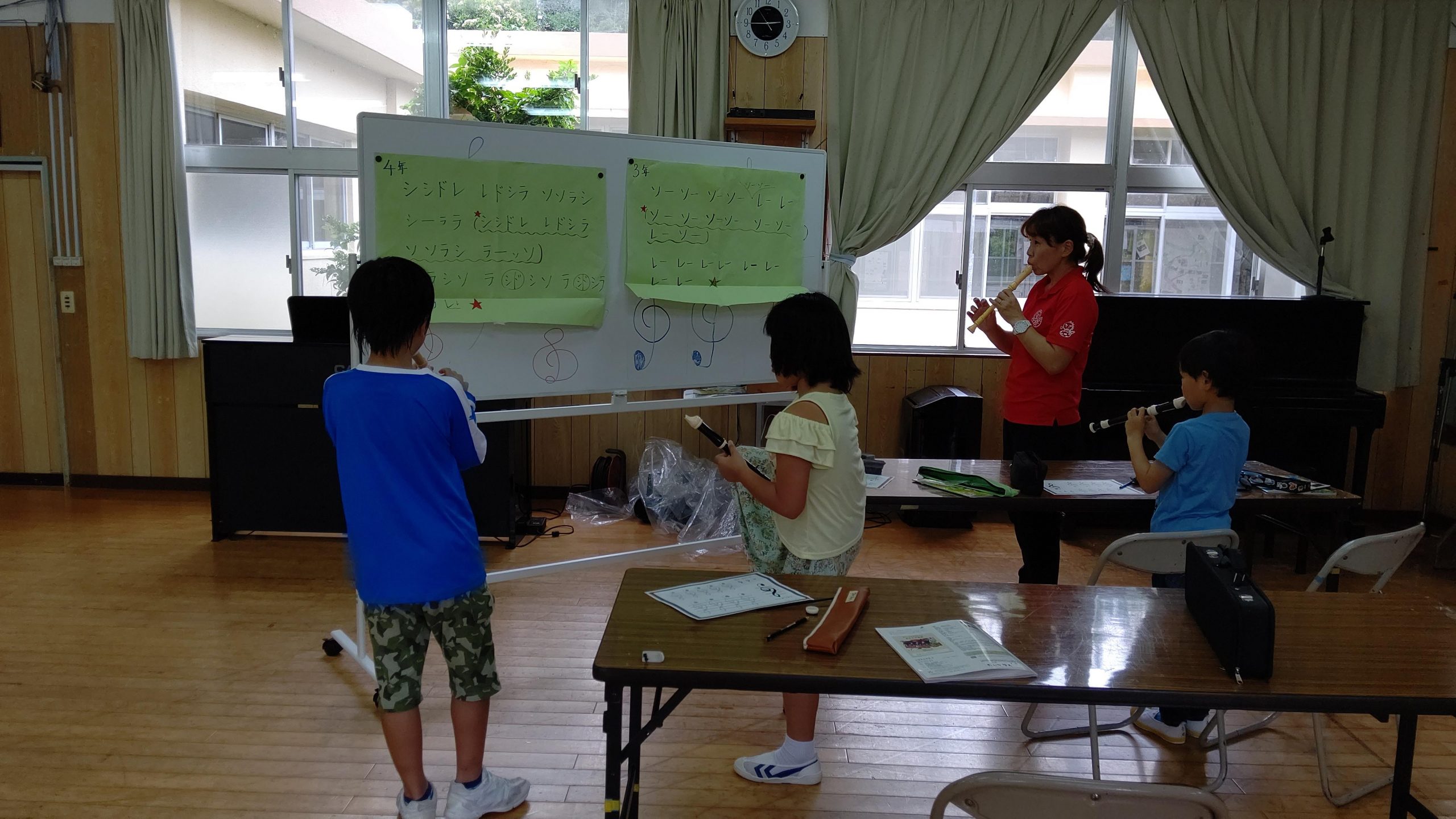 3・4年生は集会室でリコーダーの練習中です!