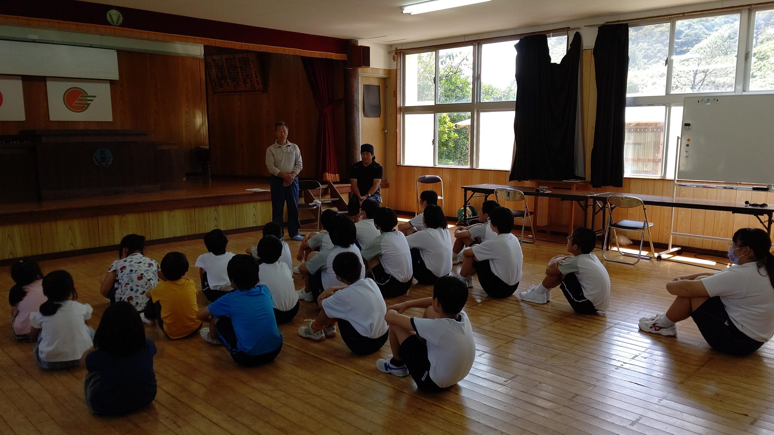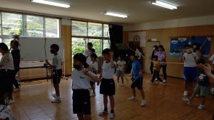 郷土芸能①(6月23日) 投稿者: 三島村立 三島大里学園 2021年6月23日 運動会で大里に昔から伝わる『弓矢踊り』と『面踊り』を披露します。 今日は地域から先生を2人お招きして,踊りの由来や基本的な動きを教えていただきました。 今日は主に『弓矢踊り』について学習しました。 実際に動いてみました。ステップが難しい。 最後にひとこといただきました。 来週も行われます。 少しずつ練習して本番へ向かいます!