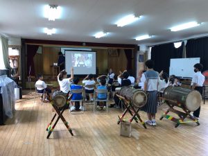 今日は「郷土芸能」と「ジャンベ」がありました。