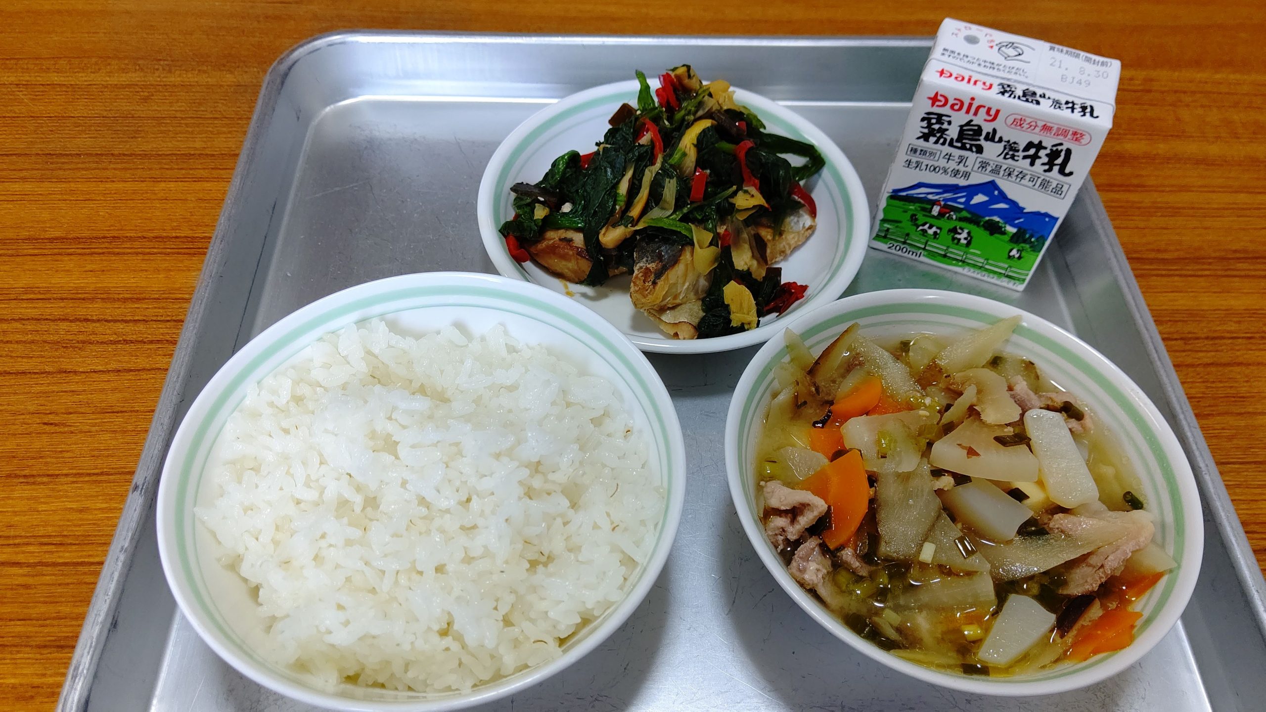 メニューは『 牛乳・麦ごはん・魚の生姜煮・豚汁 』でした。