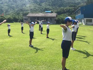 赤?白? 投稿者: 三島村立 三島大里学園 2021年9月21日 今日から,運動会練習が始まりました。 まずは,赤・白組み分けの発表です。 練習が始まる前からバチバチです。 続けて,入場の練習です。 リズムを合わせて1・2,1・2♪ そろうまで何回も練習。 少し休憩です。 帽子でトンボを捕まえようとしております。 ラジオ体操。 手先までピシッとのばします。 熱中症に気をつけながら,運動会まで突っ走りましょう。