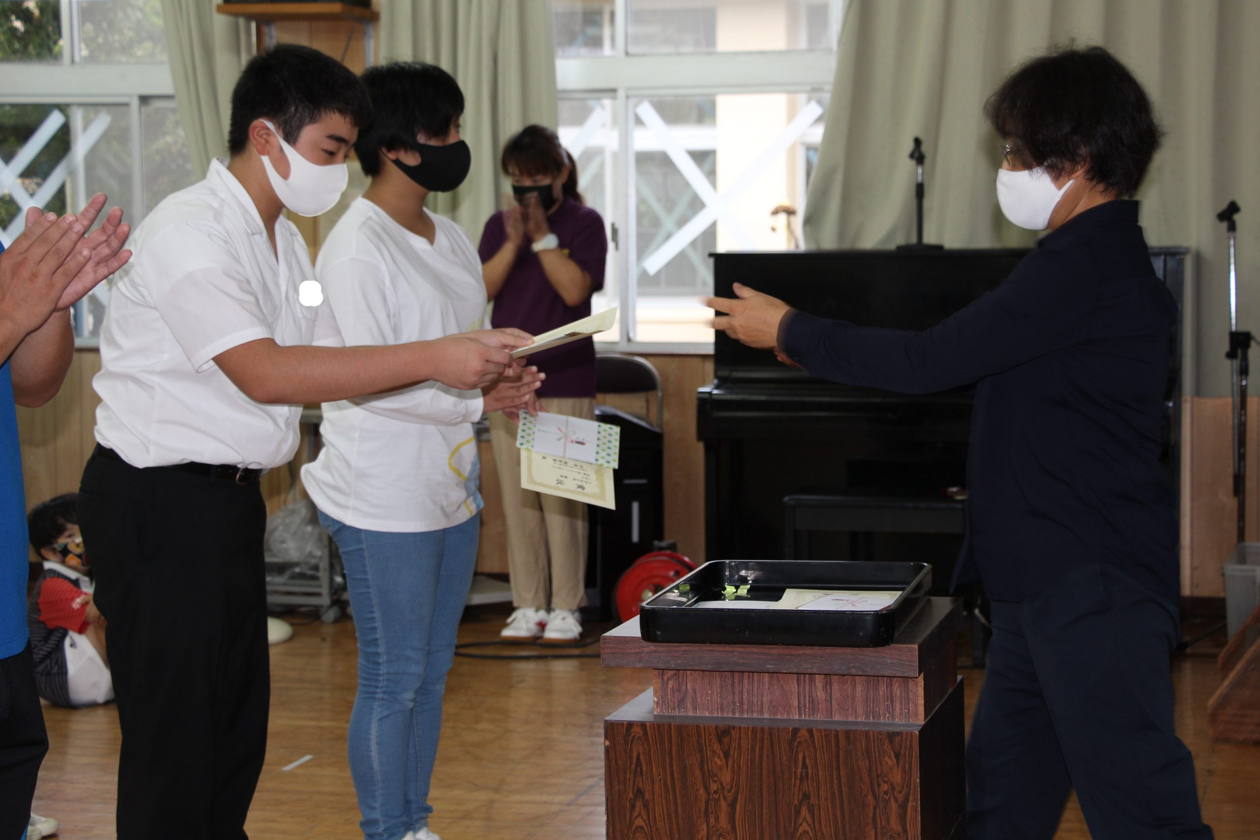 今回は,1学期の頑張りの成果がたくさん返ってきており,表彰式を行いました。