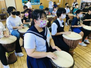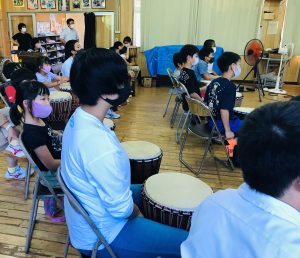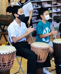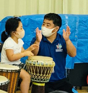 ジャンベの先生と遠隔でつなぎ、リモートで行いました。