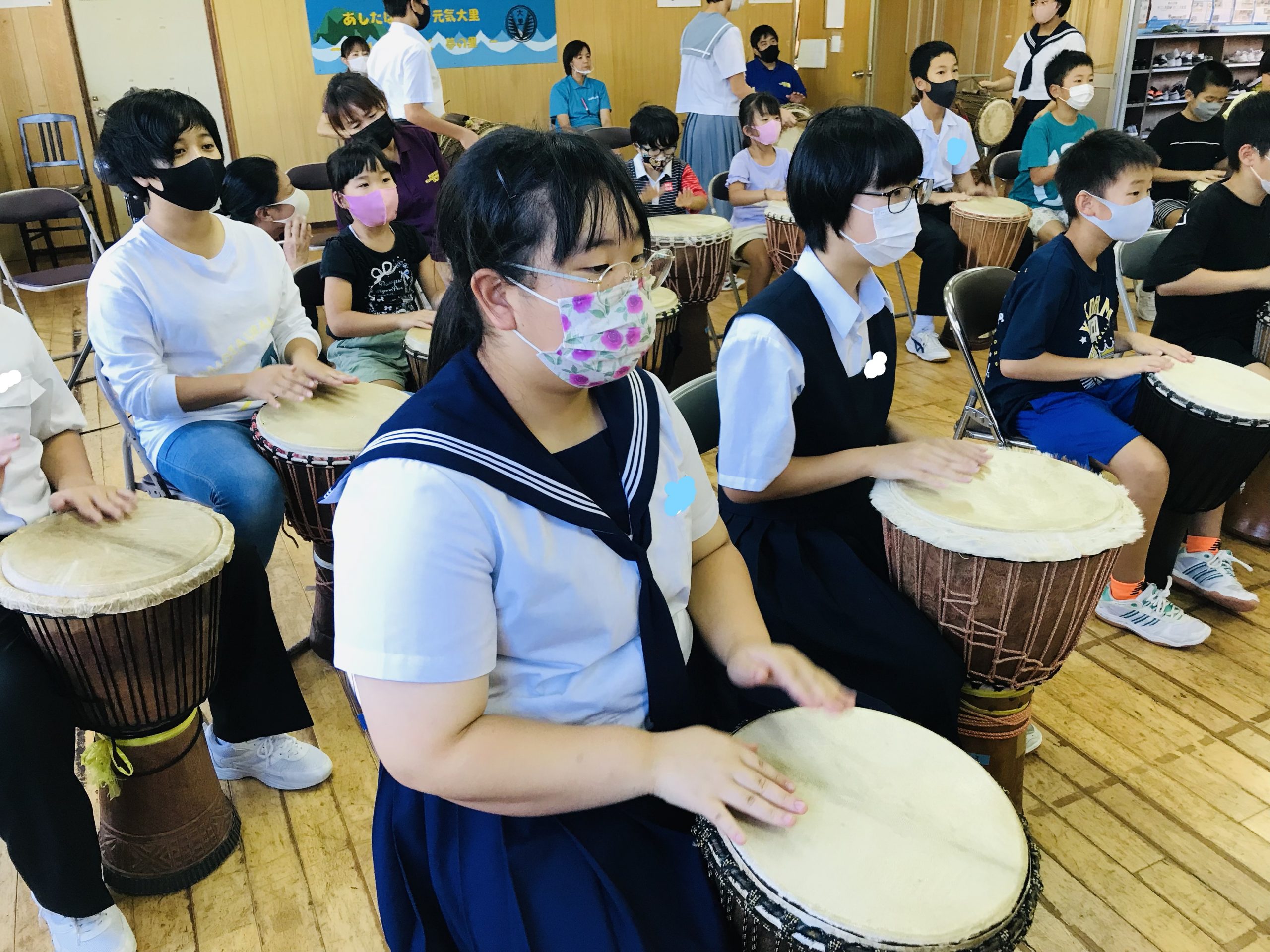 1年生から9年生まで一緒にジャンベを奏でます。