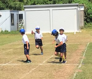 最後、アンカーは校庭を1周してゴールです。