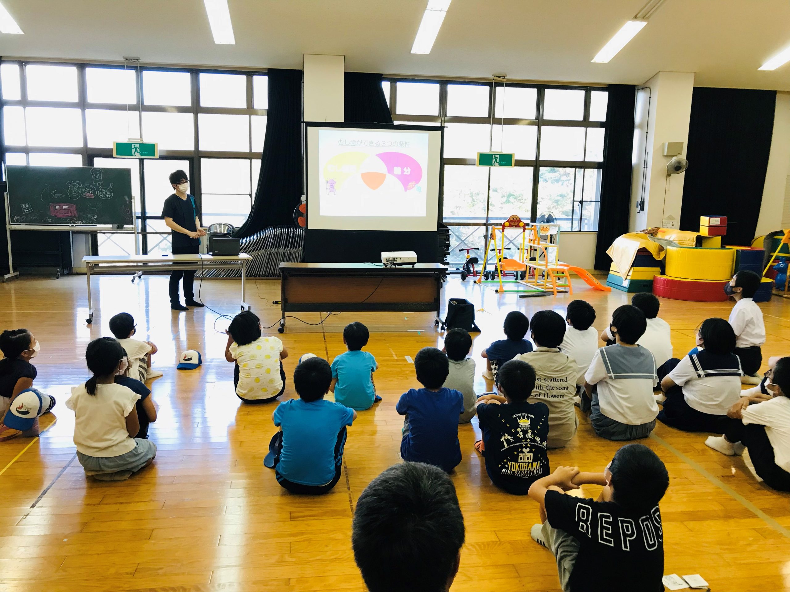 村の歯科診療にあわせて小児歯科の先生が「歯の健康」についてお話をしてくださいました。