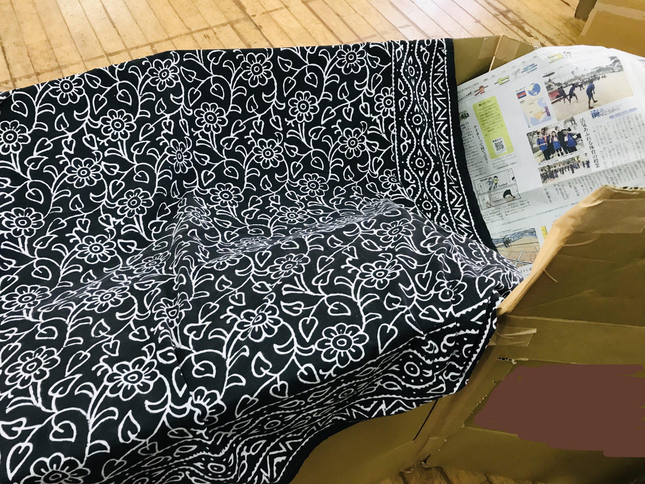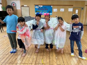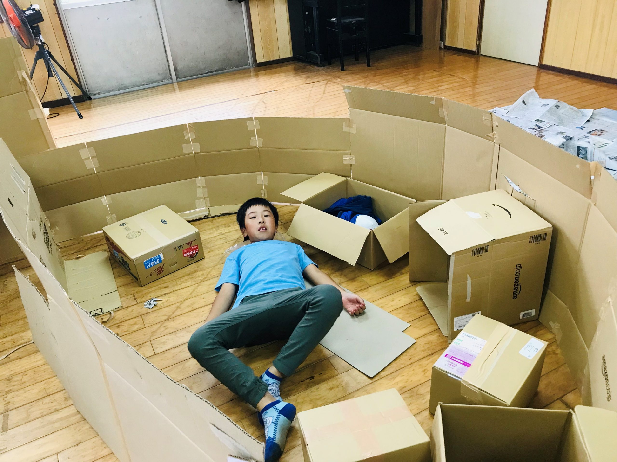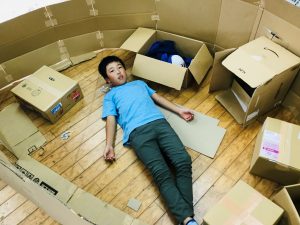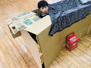 集会室で今まで集めてきたダンボールを使っておうち作り。
