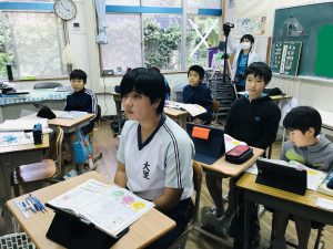 三島村の栄養教諭の先生と遠隔をつないで,和食と栄養について勉強しました。