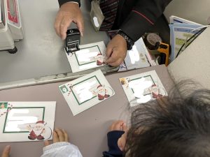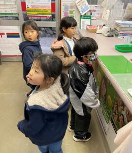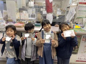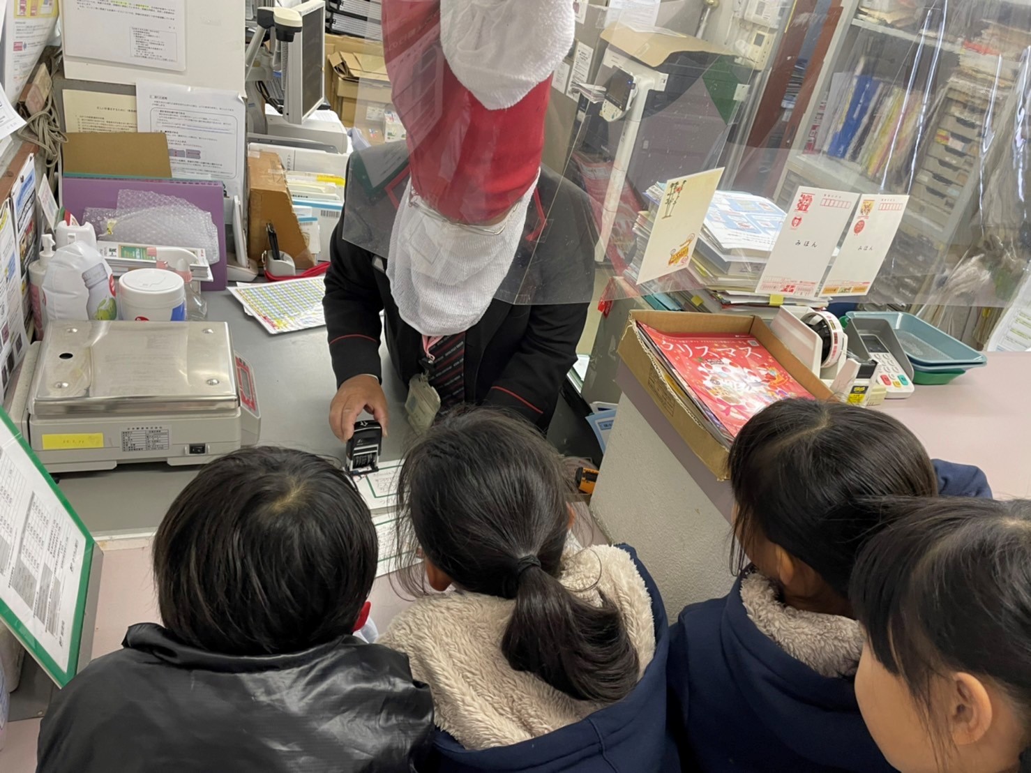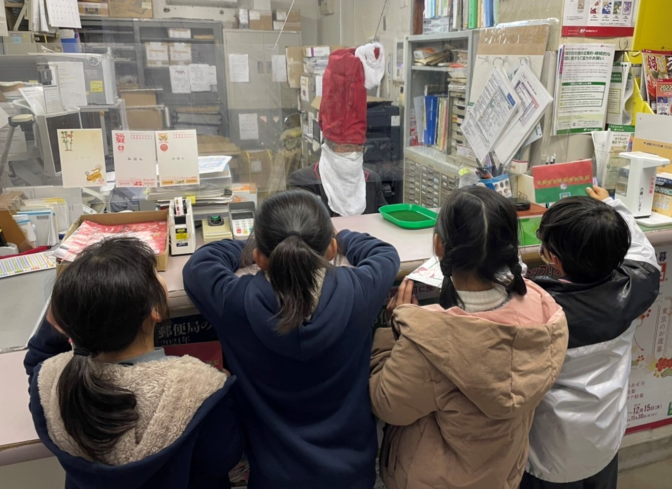 5時間目、1・2年生4人は郵便局へとやってきました。